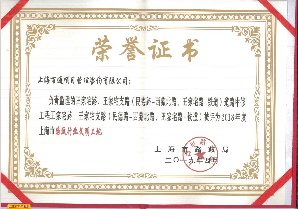 2018年度上海市“路政行業(yè)文明工地”-王家宅路、王家宅支路(民德路~西藏北路、王家宅路~鐵道)道路中修工程王家宅路、王家宅支路(民德路~西藏北路、王家宅路~鐵道)工程