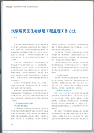 淺談居民區(qū)住宅修繕工程監(jiān)理工作方法(監(jiān)理部:劉艷)《上海建設(shè)工程咨詢》2018.1
