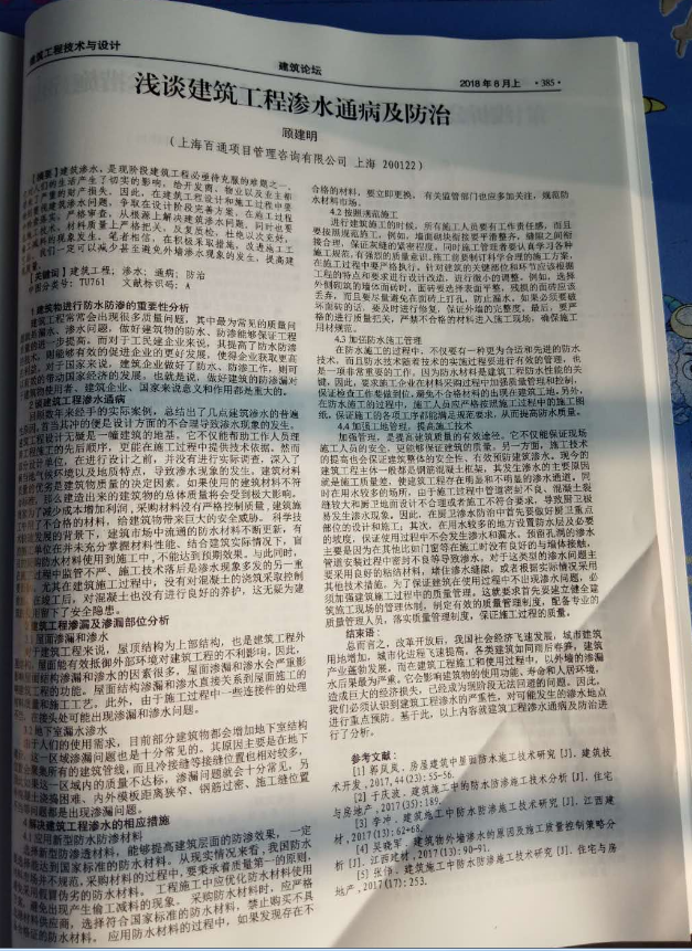 淺談建筑工程滲水通病及防治(監(jiān)理部:顧建明 《建筑工程技術(shù)與設(shè)計(jì)》 2018.8上 )
