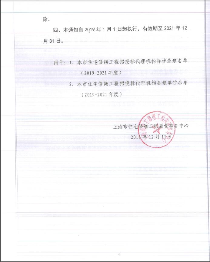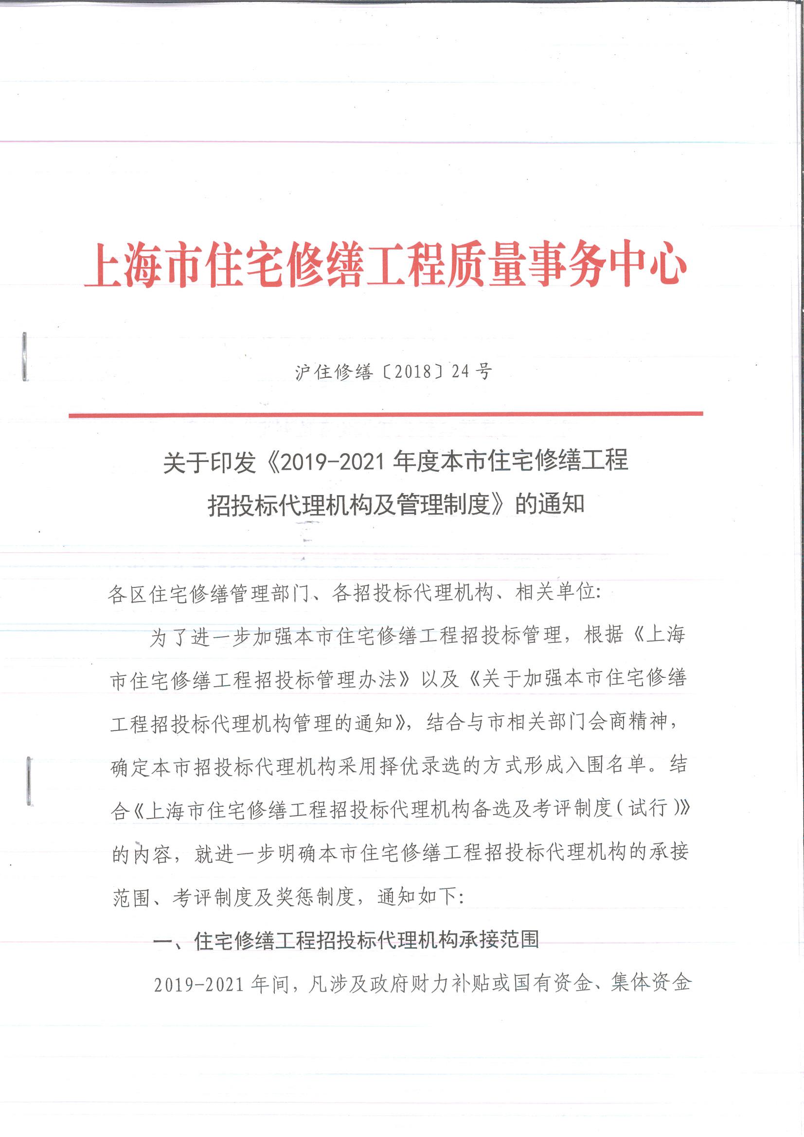 2019-2020年度本市住宅修繕工程招標(biāo)代理機構(gòu)及管理制度(滬住修繕〔2018〕24號)