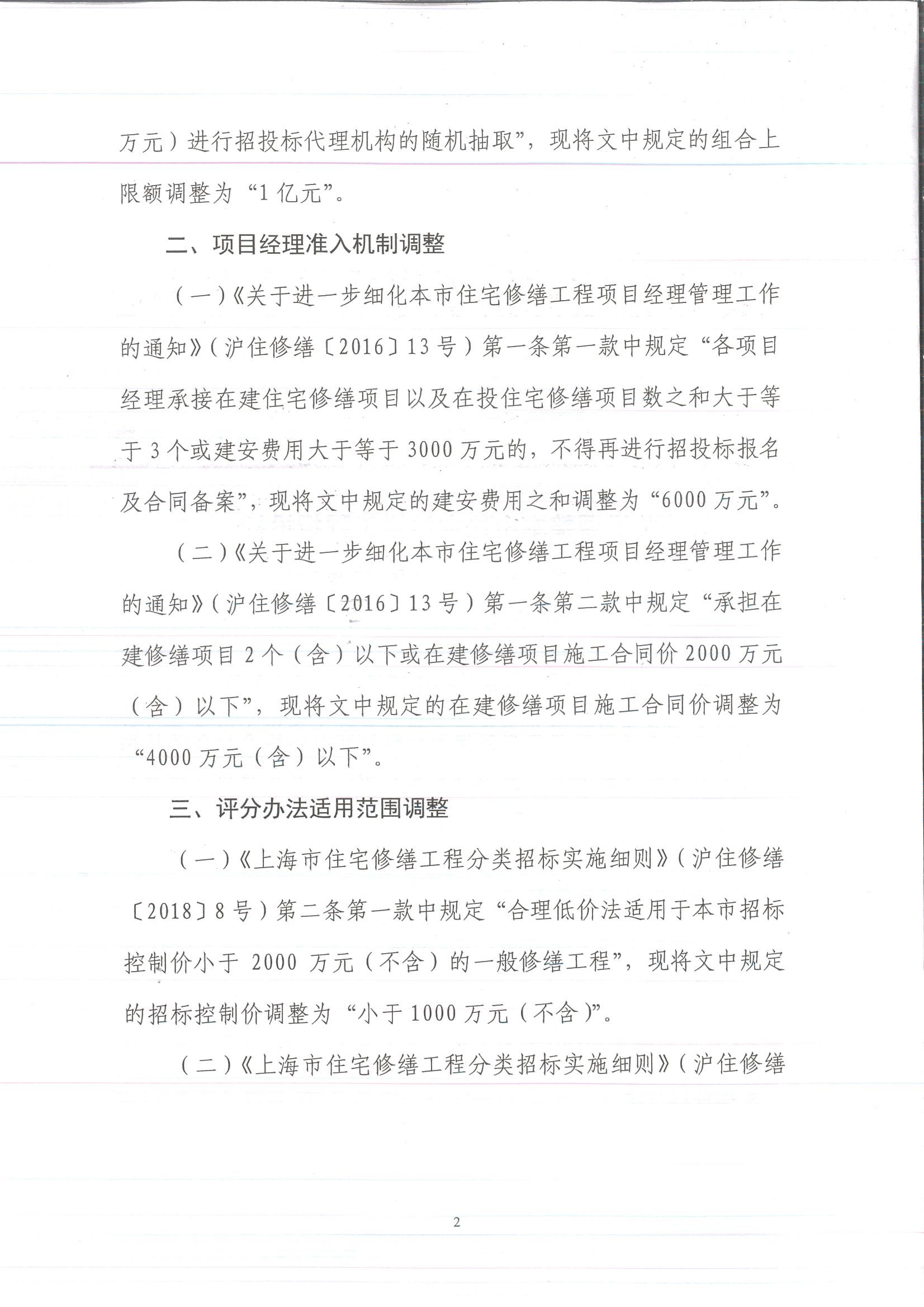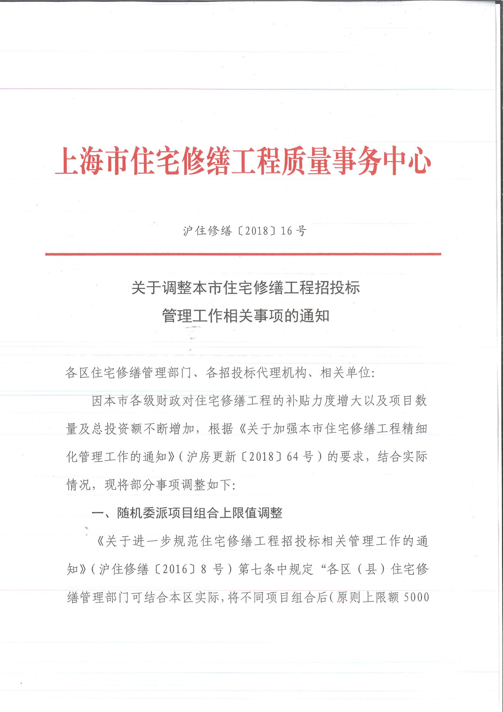 關(guān)于調(diào)整本市住宅修繕工程招投標管理工作相關(guān)事項的通知(滬主修繕〔2018〕16號)