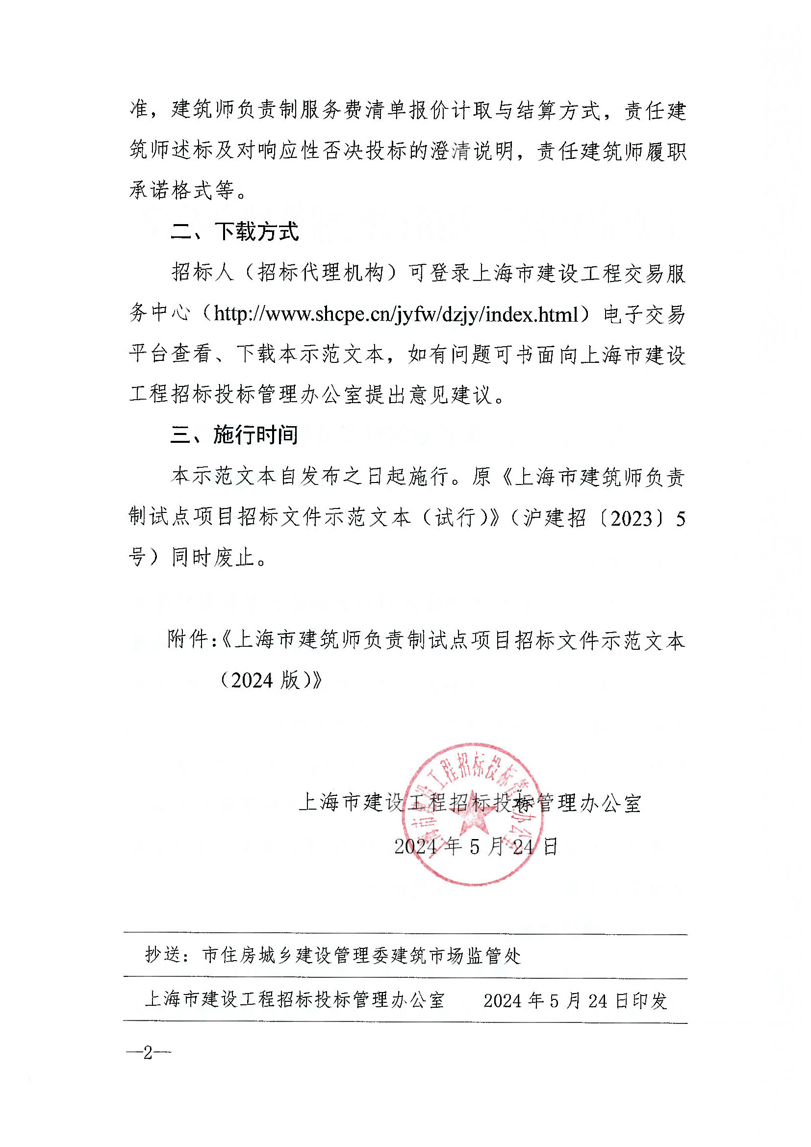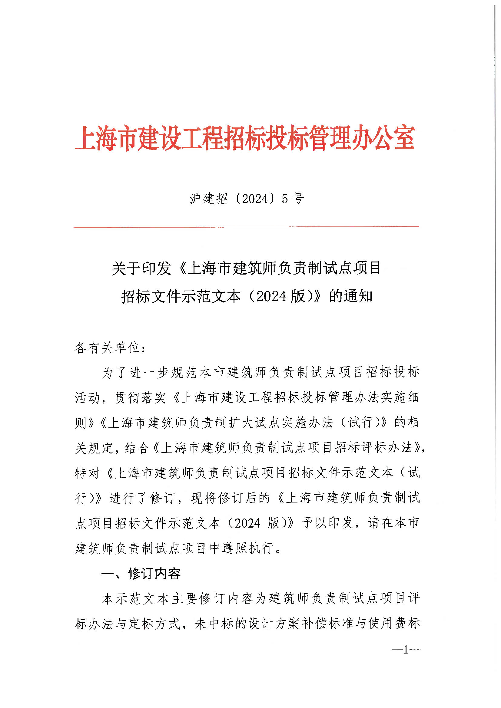[關(guān)于印發(fā)《上海市建筑師負責(zé)制試點項目招標(biāo)文件示范文本(2024版)》的通知(滬建招〔2024〕5號)]