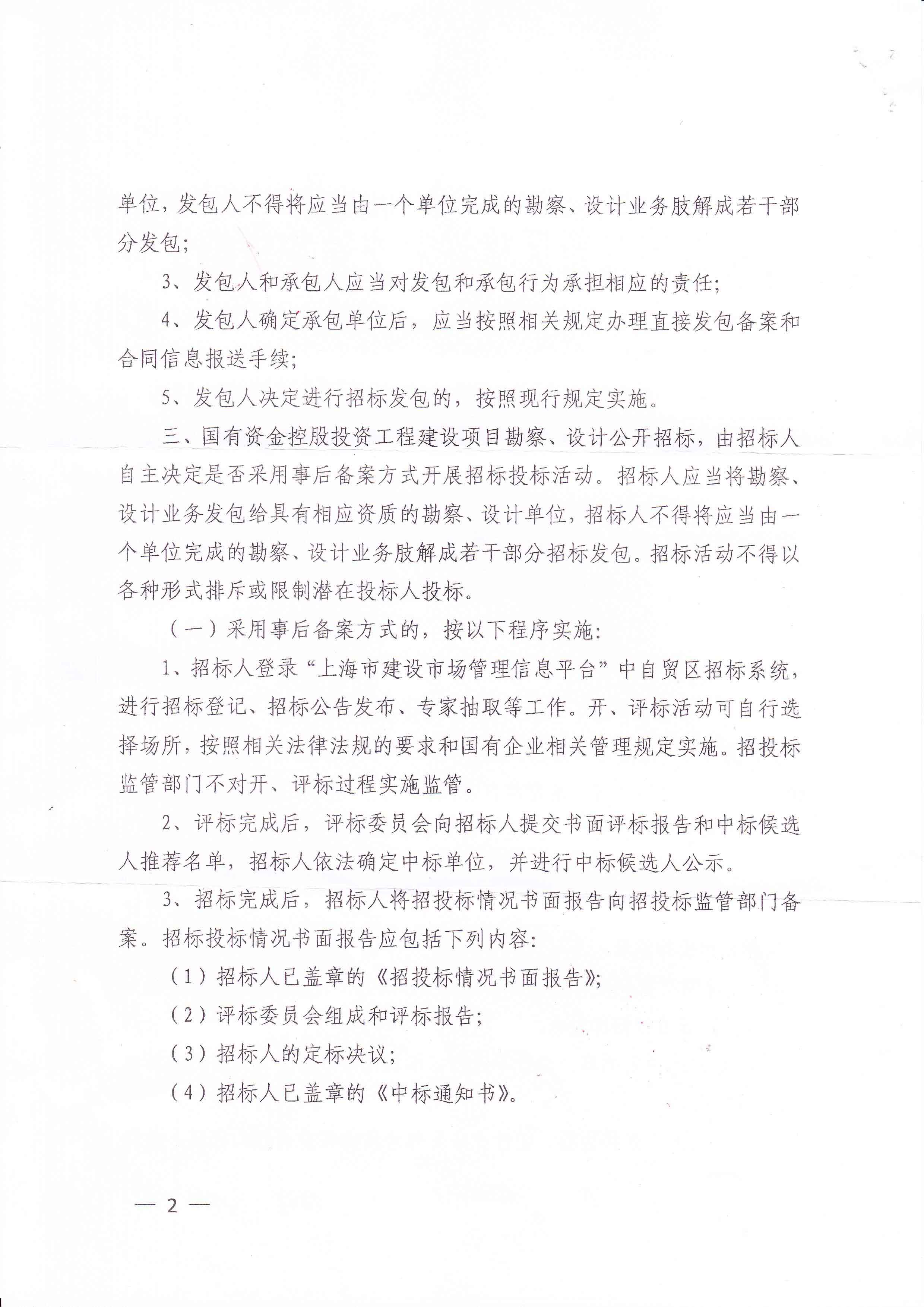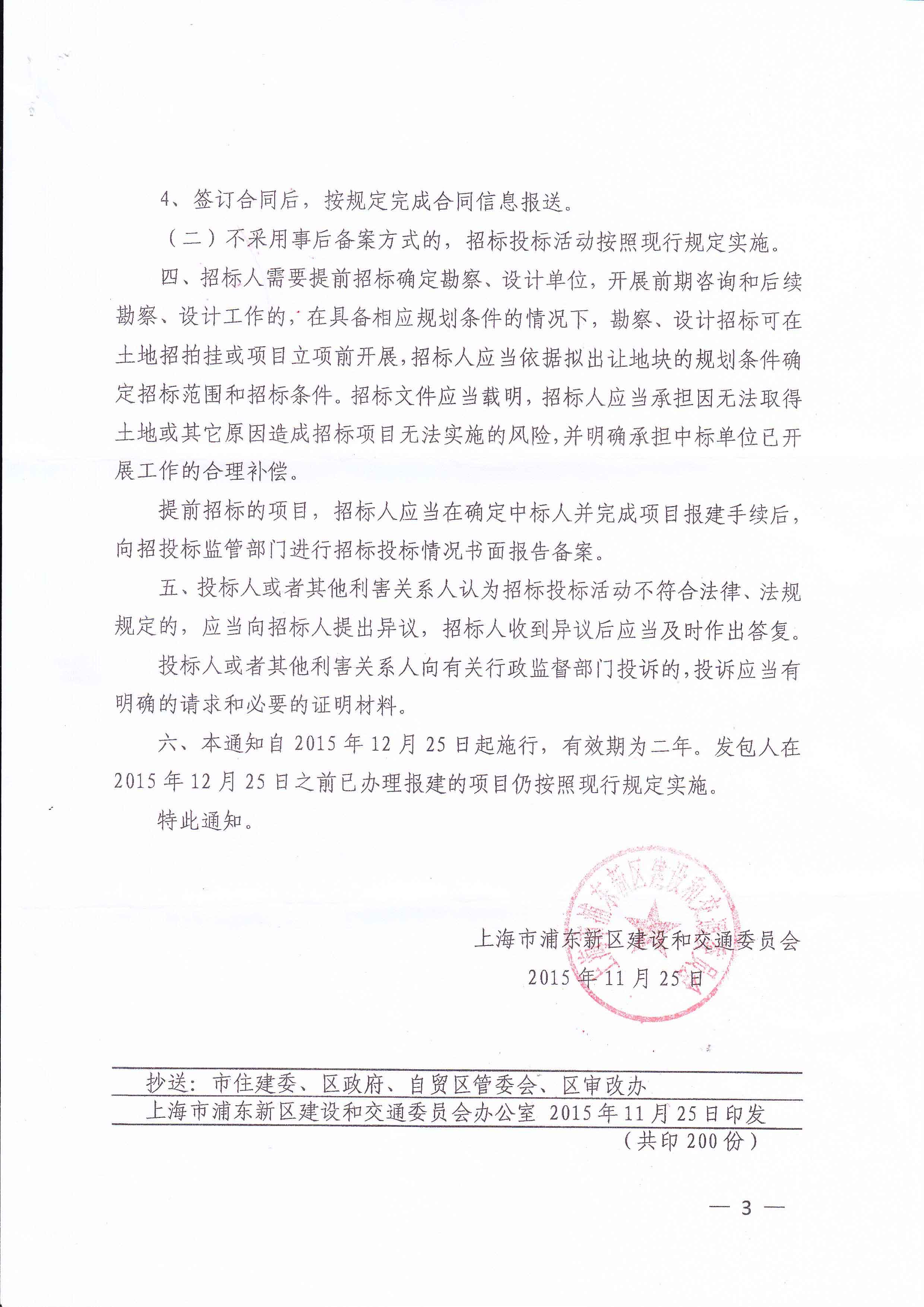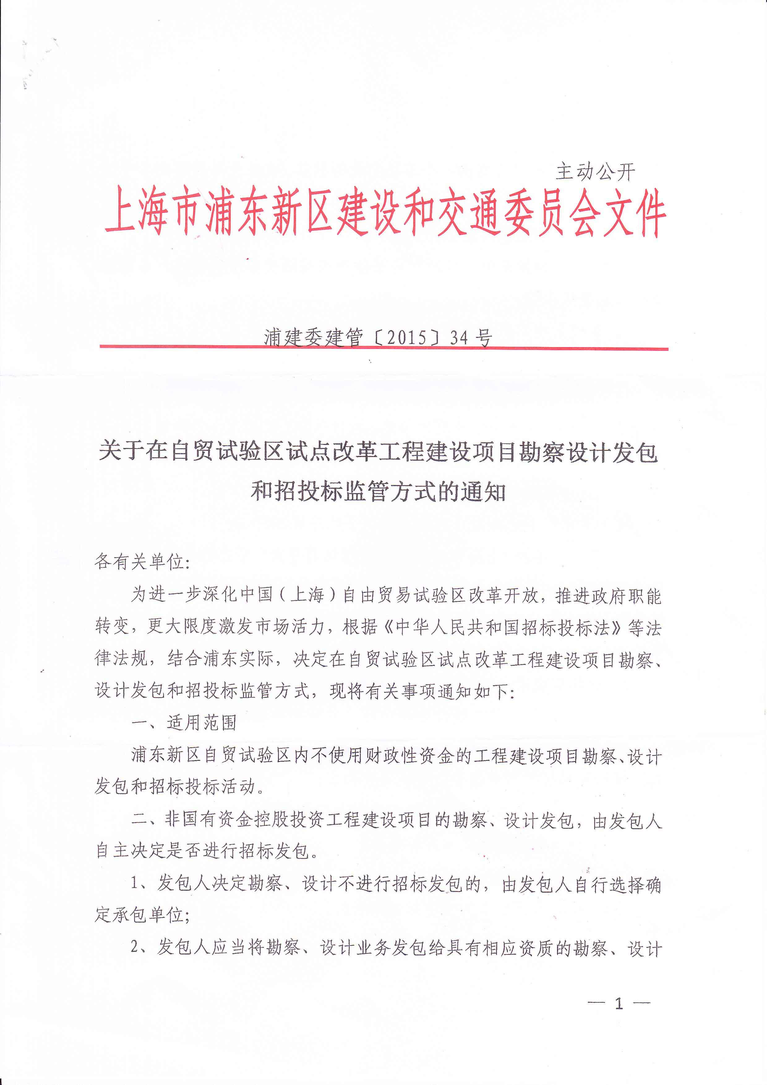 關(guān)于在自貿(mào)試驗(yàn)區(qū)試點(diǎn)改革工程建設(shè)項(xiàng)目勘察設(shè)計(jì)發(fā)包和招投標(biāo)監(jiān)管方式的通知(浦建委建管[2015]34號(hào))