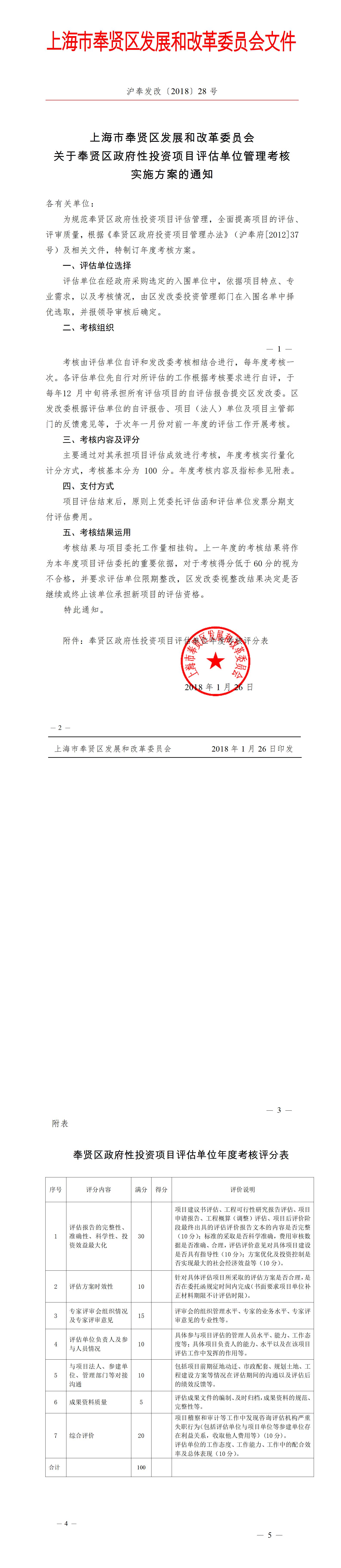 [奉賢]關(guān)于奉賢區(qū)政府性投資項(xiàng)目評(píng)估單位管理考核實(shí)施方案的通知【滬奉發(fā)改[2018]28號(hào)】