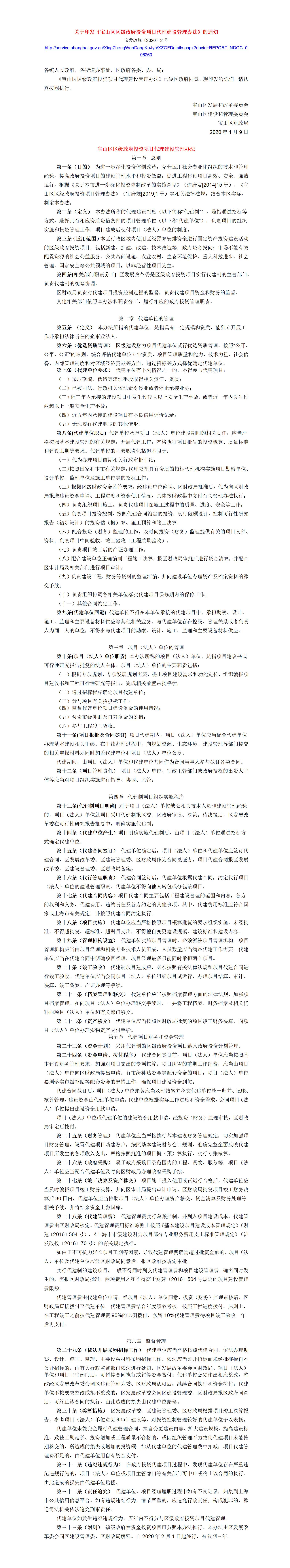 [寶山]關(guān)于印發(fā)《寶山區(qū)區(qū)級(jí)政府投資項(xiàng)目代理建設(shè)管理辦法》的通知【寶發(fā)改規(guī)〔2020〕2號(hào)】
