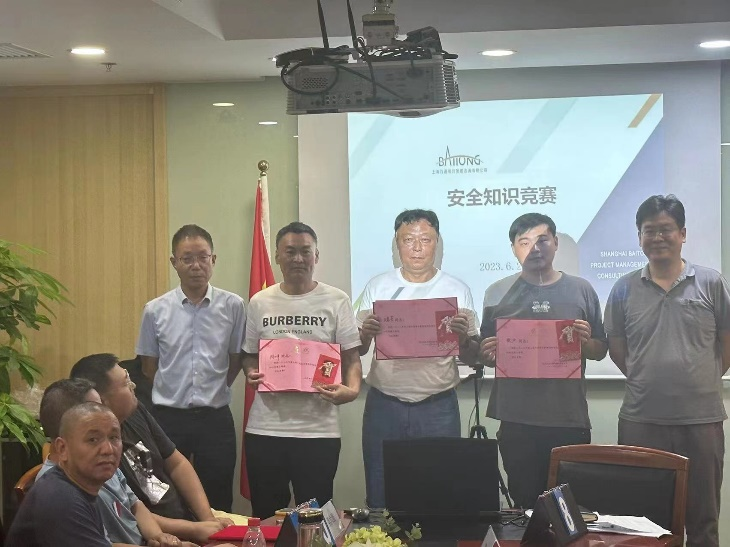 2023年6月是我國第22個“安全生產(chǎn)月”,今年安全生產(chǎn)月主題是“人人講安全,個個會應(yīng)急”。為響應(yīng)“安全生產(chǎn)月”活動,我司監(jiān)理板塊成立了“安全生產(chǎn)月”活動小組,并安排各部門、各項目監(jiān)理組積極組織相關(guān)活動。經(jīng)板塊總工辦、工程部、辦公室等各部門精心籌備,6月28日下午1點,百通監(jiān)理板塊“安全知識競賽“在公司向城路1號會議室舉行。活動開始前,板塊副總經(jīng)理楊曉明首先傳達監(jiān)理板塊安全生產(chǎn)活動的精神,并對本次比賽作了精彩激昂的動員講話,參賽隊員精神為之振奮。競賽期間,現(xiàn)場氣氛緊張激烈、掌聲此起彼伏,選手們熟練地運用所掌握的危大工程、消防及職業(yè)健康等安全知識,充分展示了安全生產(chǎn)技能。本次安全知識競賽的試題囊括了建設(shè)行業(yè)最新的規(guī)范及主管部門要求,結(jié)合行業(yè)內(nèi)安全管理的重點環(huán)節(jié)及常見案例,通過必答題,選答題、搶答題三個環(huán)節(jié)的緊張角逐,最后產(chǎn)生一、二、三等獎各三名選手,并由板塊領(lǐng)導(dǎo)向獲獎選手頒發(fā)榮譽證書和獎金。在答題過程中,總工辦對問題進行詳細解答和分析,所有參加人員一起重新學(xué)習(xí)了安全生產(chǎn)各項必備知識,寓教于樂,真正做到了“以賽促學(xué),強意識,以學(xué)促行抓安全”。
