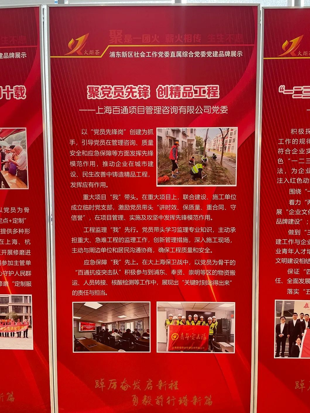 創(chuàng)先爭(zhēng)優(yōu) 學(xué)習(xí)先進(jìn) 6月29日,在浦東新區(qū)社會(huì)工作黨委直屬綜合黨委慶祝建黨102周年暨表彰活動(dòng)中,公司黨委申報(bào)的“聚黨員先鋒 創(chuàng)精品工程”項(xiàng)目榮獲2023年度“火炬薈”優(yōu)秀黨建品牌。公司黨委委員、監(jiān)理板塊副總經(jīng)理、高級(jí)工程師朱樹波同志、公司招標(biāo)代理板塊副總工程師、咨詢?nèi)拷?jīng)理、高級(jí)工程師畢松梅同志榮獲“優(yōu)秀共產(chǎn)黨員”稱號(hào)。