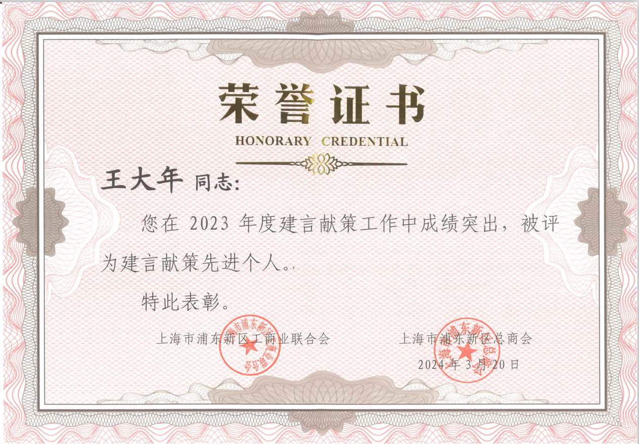 | 我司蟬聯(lián)浦東“光彩之星”、王大年董事長榮獲2023年度建言獻(xiàn)策“先進(jìn)個人” |