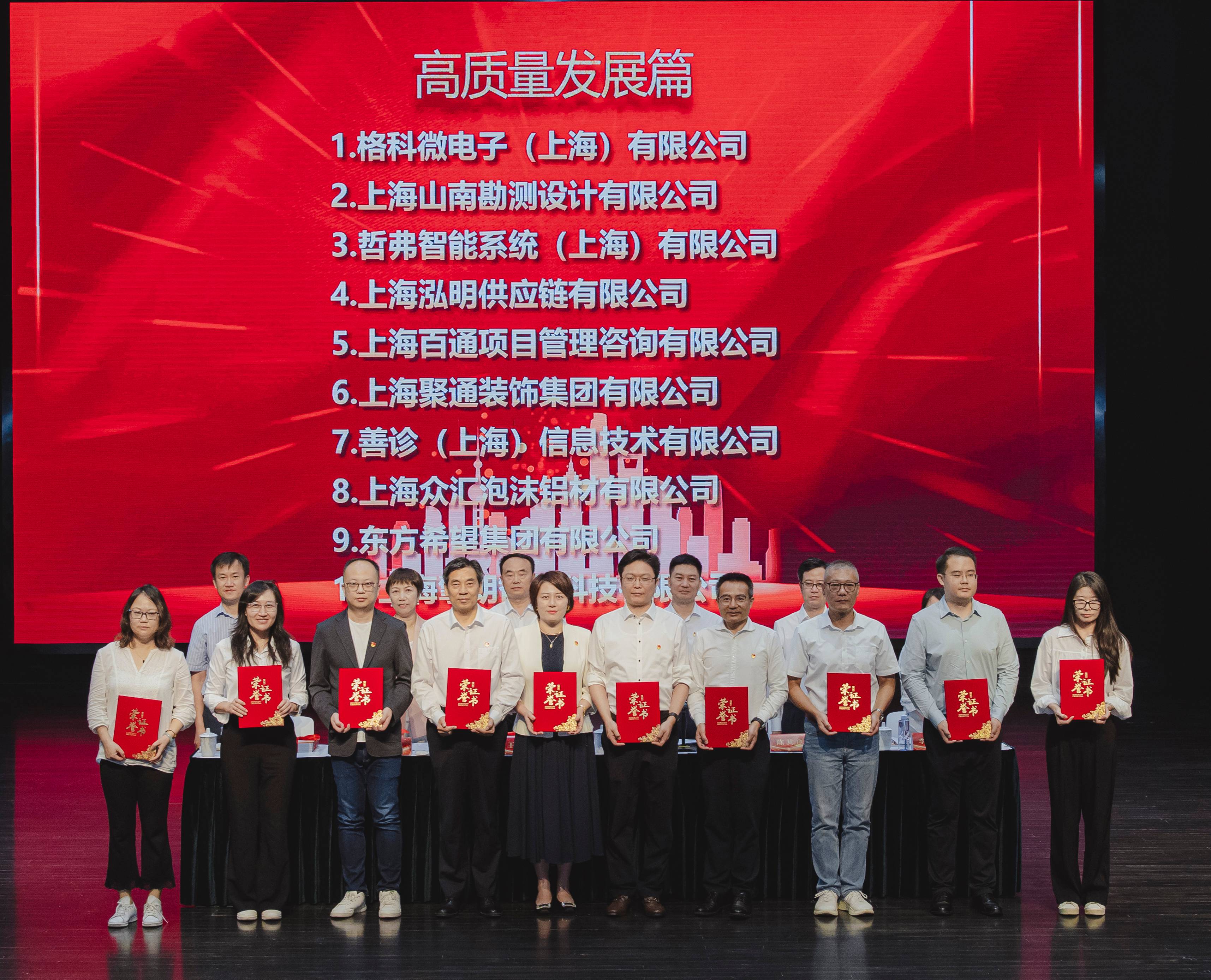 會上,我司《高舉理想信念火炬,筑引領(lǐng)區(qū)精品工程》工作案例獲得表彰,成功入選2024年《浦東新區(qū)民營經(jīng)濟人士理想信念教育活動優(yōu)秀案例集》高質(zhì)量發(fā)展篇,公司董事、黨委書記、副總經(jīng)理顧超同志上臺領(lǐng)獎。