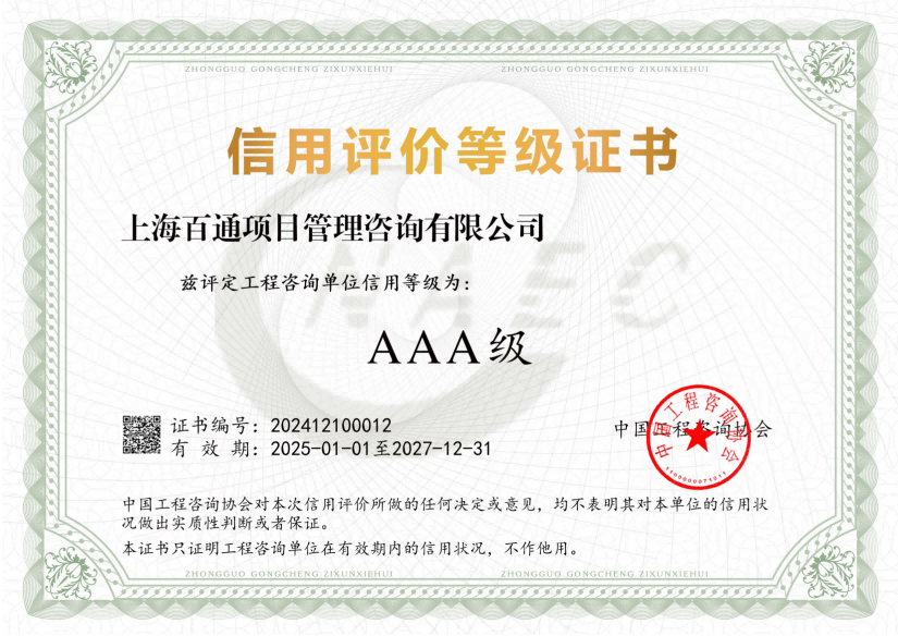 近日,中國工程咨詢協(xié)會正式發(fā)布2025年第1號公告,其中公布了2024年度中國工程咨詢協(xié)會信用評價(jià)名單及等級。我司憑借卓越的專業(yè)實(shí)力、良好的經(jīng)營管理、突出的創(chuàng)新能力以及嚴(yán)格的信用管理,成功榮獲AAA級(最高級)信用等級,這是我司在工程咨詢領(lǐng)域取得的又一重大榮譽(yù)。 本次信用評價(jià)工作由中國工程咨詢協(xié)會組織,旨在全面評估工程咨詢單位的專業(yè)能力、經(jīng)營管理、創(chuàng)新能力、信用管理以及是否存在不良行為等多個(gè)方面的信用狀況。評價(jià)過程嚴(yán)格遵循公平、公正、公開的原則,確保評價(jià)結(jié)果的權(quán)威性和公信力。經(jīng)過層層篩選和嚴(yán)格評審,我司憑借在各個(gè)方面的優(yōu)異表現(xiàn),成功脫穎而出,榮獲了AAA級信用等級。 這一榮譽(yù)的獲得,不僅是對我司在工程咨詢領(lǐng)域?qū)I(yè)實(shí)力和綜合能力的充分認(rèn)可,更是對我司長期以來堅(jiān)持誠信經(jīng)營、注重品質(zhì)提升的肯定和鼓勵。自今年7月成功延續(xù)工程咨詢(建筑、市政)甲級資信以來,我司再次以實(shí)際行動證明了自身在行業(yè)內(nèi)的領(lǐng)先地位和卓越實(shí)力。 展望未來,我司將繼續(xù)秉承誠信為本、品質(zhì)為先的經(jīng)營理念,不斷提升自身的專業(yè)能力和服務(wù)水平,為客戶提供更加優(yōu)質(zhì)、高效的工程咨詢服務(wù)。同時(shí),我們也將進(jìn)一步加強(qiáng)信用體系建設(shè),不斷提升公司的綜合競爭力和社會影響力,為推動工程咨詢行業(yè)的健康發(fā)展貢獻(xiàn)更多的力量。